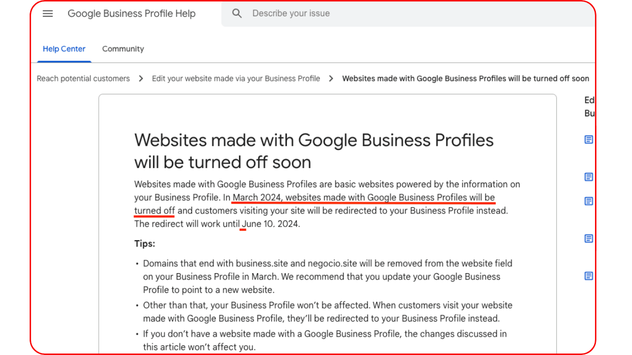 Google is deleting millions of websites made with GoogleMyBusiness and sending their traffic to the client’s GoogleBusinessProfile.