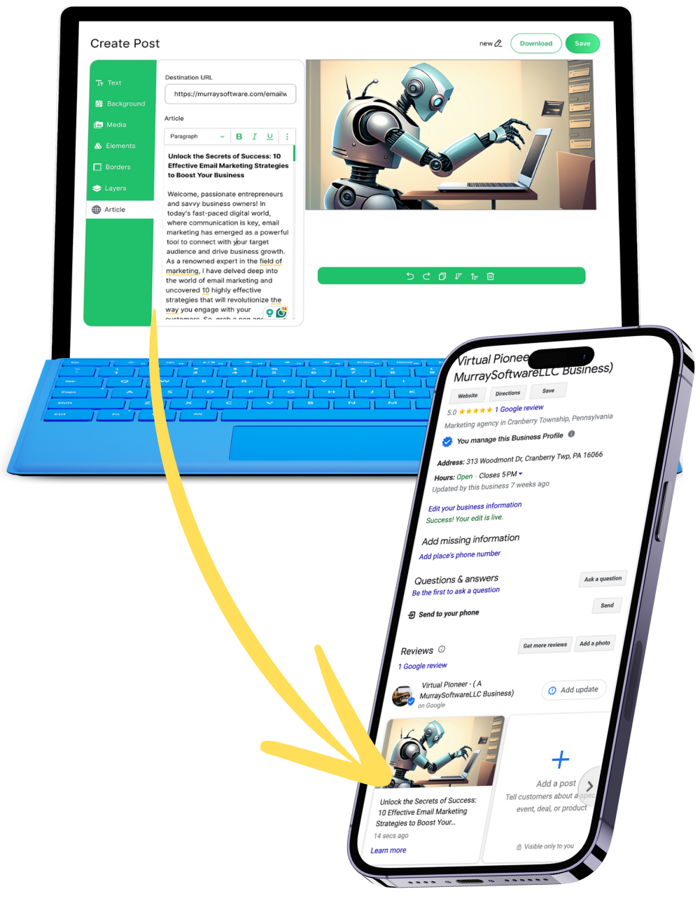 Publish AI content directly to GBPs automatically to help the profile rank
