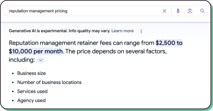Bill Gates argues in BusinessInsider that AI search with 1 suggestion for a local query may replace traditional search with many results. It’s critical now to have the best reputation & most reviews as 1 business may get 100% of leads very soon since AI will recommend them over others.