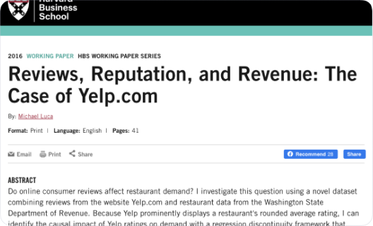 “Every additional one-star Yelp rating causes an increase in the business’s revenue as high as 9%”