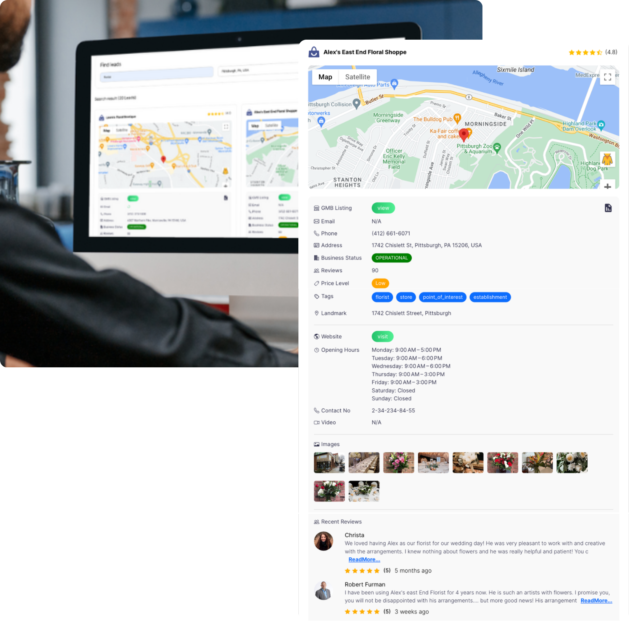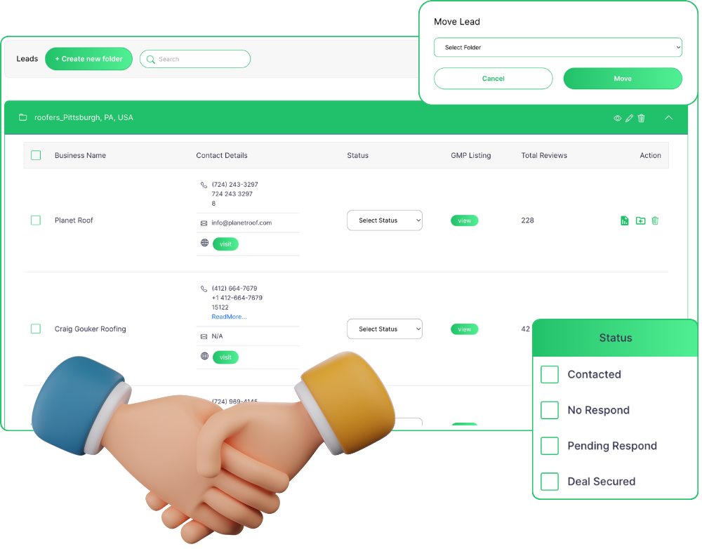 Quickly find targeted leads in any niche that may need reputation help. See detailed metrics like their review count and rating, contact information, profile optimization, and more. See if they’ve claimed their GoogleBusinessProfile or not as well.