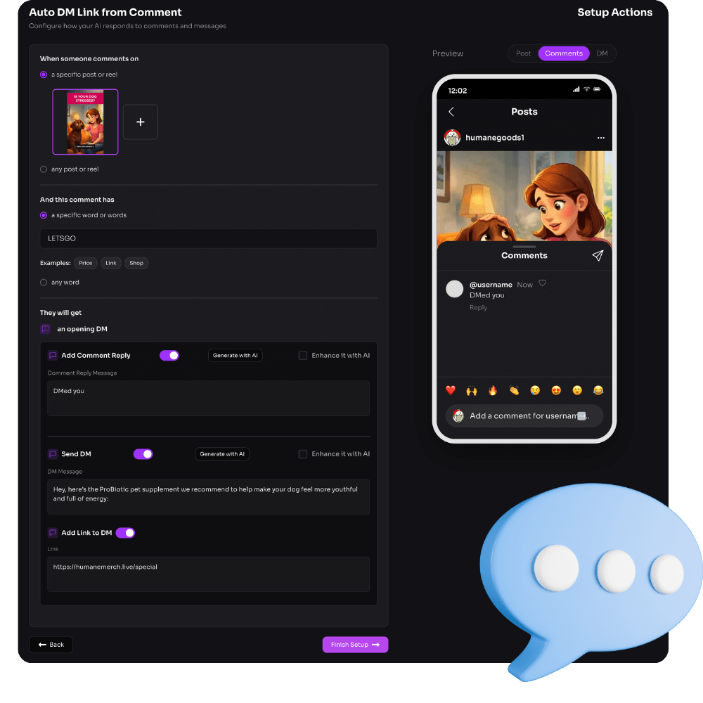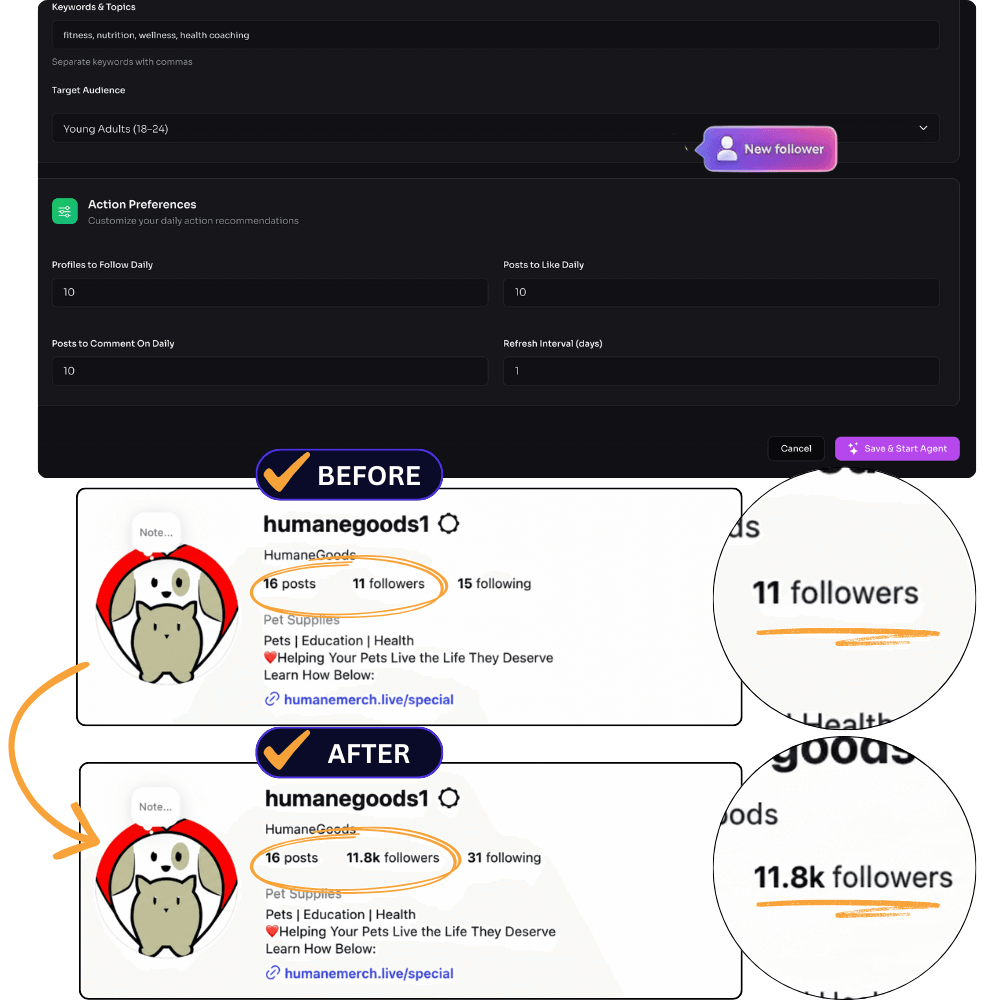 Then, let the Genies start getting the right followers, making content that gets viewers, and auto-DMs followers to get them to buy it.