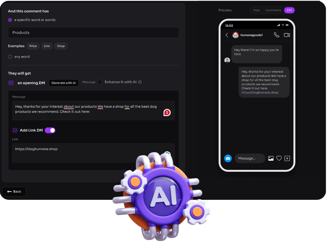 Then, let the Genies start getting the right followers, making content that gets viewers, and auto-DMs followers to get them to buy it.