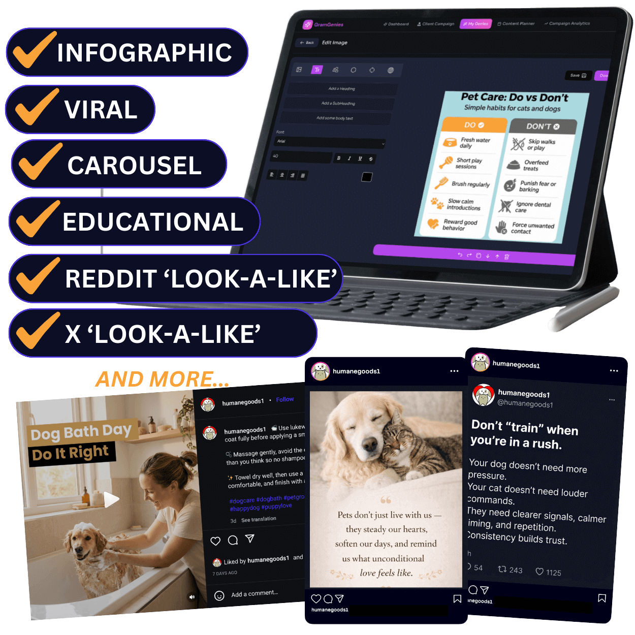 Most AI tools help you generate content in isolation. GramGenies is different. It is built specifically for Instagram and connects content creation, trends, growth, engagement, DMs, and monetization into one system. It also includes complete training that shows you how to turn that activity into income. This is direction plus execution, not just tools.