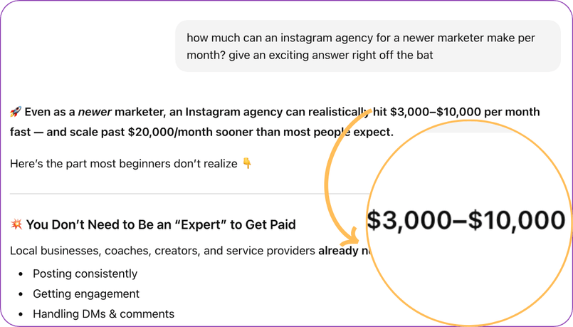 Or, check on Instagram for businesses in your area that don't have auto-replies. Send them a DM linking to an example right on Instagram. Easily get $1000+ for that without being 'salesy' - which doesn't include the additonal services you can make - content creation, auto-following, and more.