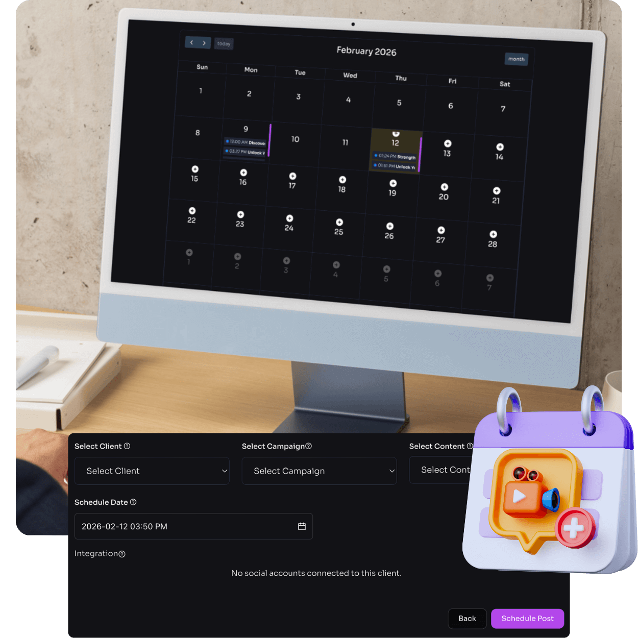 After generating content, you can schedule posts directly in the built-in calendar.