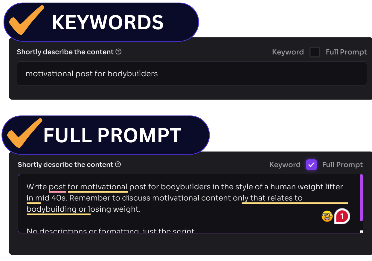 You can keep it simple by entering a keyword or phrase. Or you can use advanced prompting to control structure, angle, length, and intent.