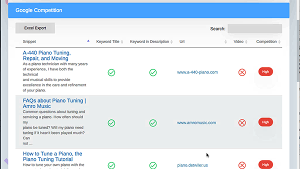 Just like YouTube competition, spy on the top 10 links for any keywords and see what it takes to beat them out to rank on page #1 with easy red, yellow, or green indicators.