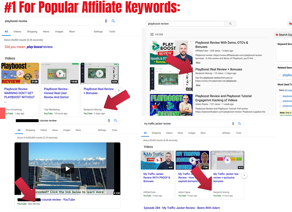 and some of the videos we’re ranked ourselves using a powerful whitehat ranking tool I’ll show you in just a second.